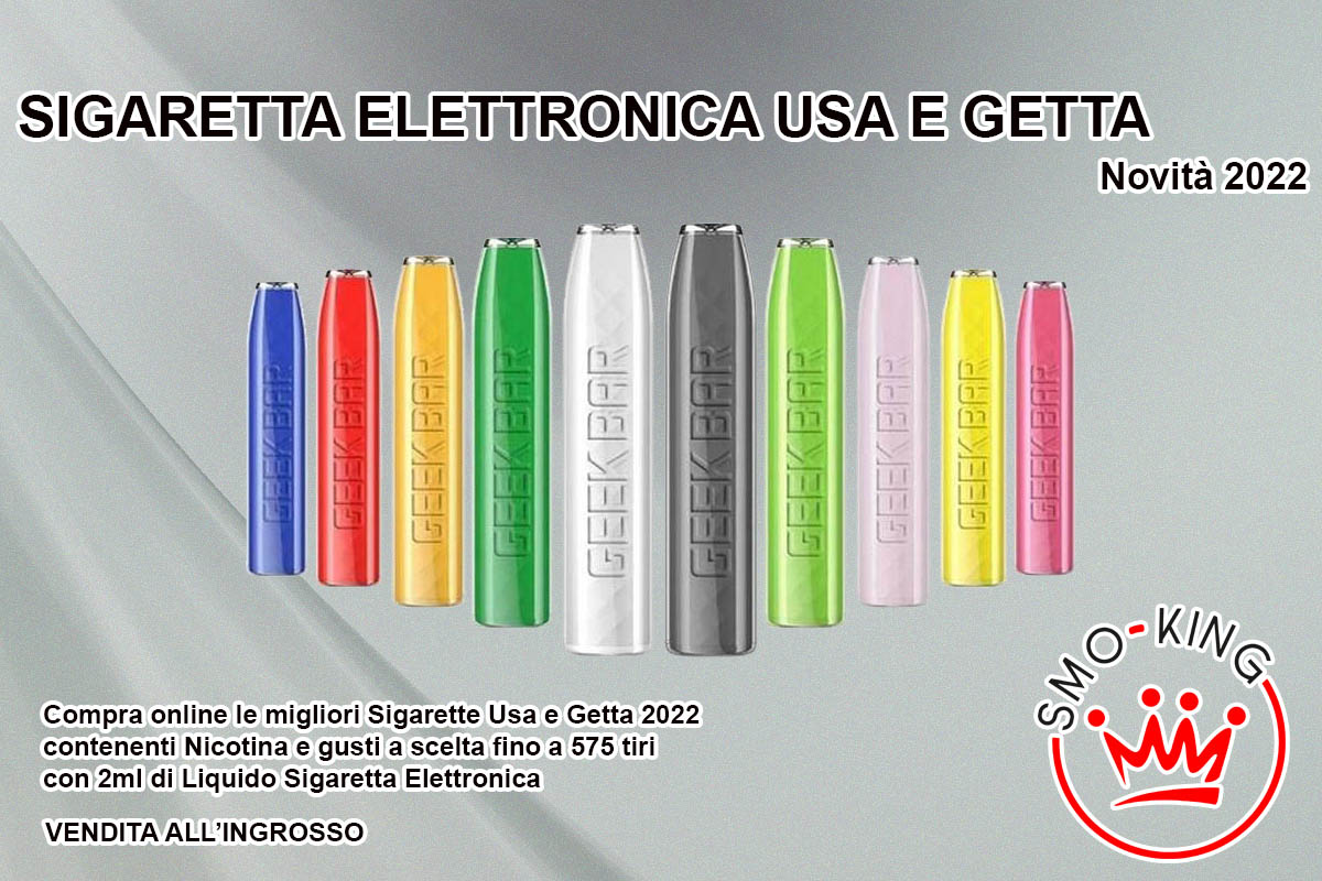 Sigaretta elettronica usa e getta novità 2022 Compra online le migliori sigarette elettroniche usa e getta 2022 ideali per smettere di fumare, facili da utilizzare con i migliori Liquidi per lo Svapo, partendo da quelli aromatizzati a quelli gusto Sigaretta al tabacco, perfette per Smettere di Fumare. Piccole e a portata di mano, potrai fare dai 200 puff (tiri) ai 400 tiri, essendo in formato per la Tpd Italiana e con Contrassegno di Stato del Monopolio, contengono una carica di Liquido Sigaretta Elettronica da 1 ml fino ad un massimo di 2 ml; queste sigarette una volte scariche, vanno smaltite dentro i contenitori autorizzati per lo smaltimento di Batterie. Da Smo-King puoi acquistare anche con vendita all’ingrosso le ultimissime Sigarette Usa e Getta per il tuo Svapo Shop, con Spedizioni in tutta Italia, acquista sempre il meglio per il tuo Store.